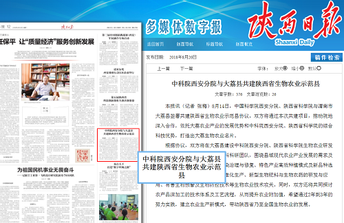 8月14日,中国科学院西安分院、陕西省科学院与渭南市大荔县签署共建陕西省生物农业示范县协议。双方将通过本次共建项目,推动院地深入合作,依托大荔农业产业的发展优势和中科院西安分院、陕西省科学院的综合科技优势,打造出大荔生物农业名片。