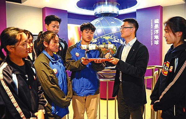 四月十二日,陕西省第二十七届“科技之春”宣传月“走进航天”科普大讲堂活动在陕西科学技术馆举行。专家现场讲解了“载人航天”“北斗导航”等航天领域取得的丰硕成果,让学生们获得了更多的航天知识。 本报记者 杜玮摄