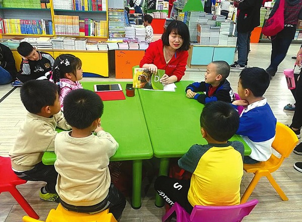 四月十三日,西安市新华书店图书大厦少儿区,小朋友们在参加阅读活动。 本报记者 霍强摄