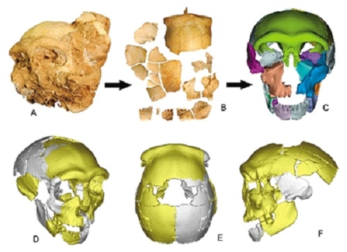 在华龙洞发现的人类化石一共有30余件,代表大约16个古人类个体。其中编号为华龙洞6号(HLD-6) 的头骨保存最为完整。这件化石发现时尚包裹在地层胶结中,仅露出眼眶和部分面部。在清理包裹化石的地层胶结后,发现了属于同一个体的19件头骨和下颌骨碎片。经过细致的修复、拼接、CT扫描、手工和虚拟复原,获得较为完整的虚拟和实体头骨、下颌骨和颅内模。复原后的华龙洞头骨包含几乎完整的面部和大部分脑颅部以及一侧下颌骨, 代表一个14-15岁少年个体。近两年来,该团队对华龙洞人类头骨、下颌骨和牙齿形态特征、测量数据、脑形态、脑量、颅骨内部结构等特征进行了细致的研究并与世界范围内古人类化石及数据进行了对比。