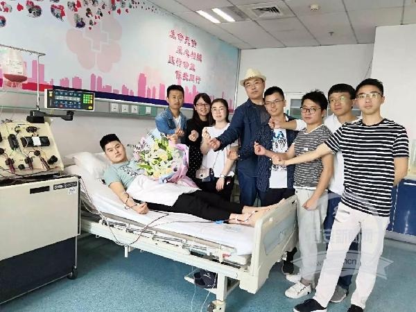 经过5个小时的分离采集,蔡东东体内的200毫升健康的“火种”——造血干细胞混悬液第一时间输入等待造血干细胞移植的白血病患者体内,为这名患者重新点燃了生的希望。