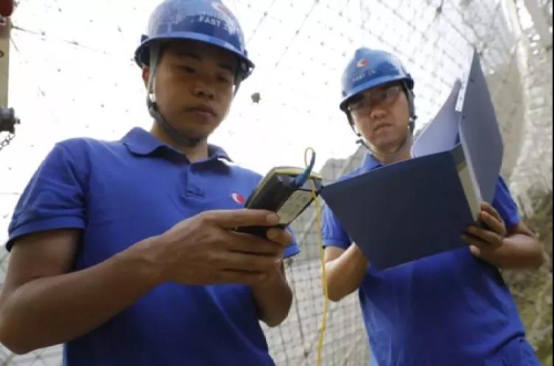 中科院国家天文台国家天文台500米口径球面射电望远镜现场,科研人员正在对设备进行巡检,保障设备正常、稳定运行。黄琳 摄