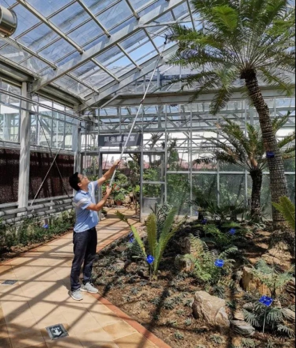 中科院植物研究所展览温室,工程师叶建飞在修剪植物。石岳 摄