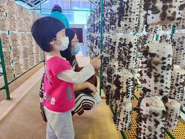 “哇!原来木耳是这么生长的!可以摘下来吗?”看着木耳智能大棚,参观的小朋友连连赞叹到。