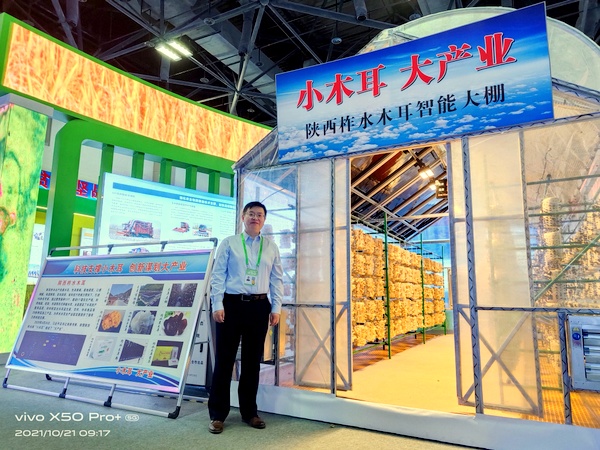 “2017年以来,在科技部的帮扶支持下,柞水县把木耳作为脱贫攻坚主导产业,建立了李玉院士工作站、木耳菌种繁育基地、木耳技术研发中心、木耳深加工基地、木耳质量检验检测中心和木耳大数据中心,有效解决了木耳菌种本地化、木耳病虫害防治、木耳废旧菌包循环利用等难题,为木耳产业提供了全链条科技支撑。”陕西省科学院陕西省微生物研究所研究员李峻志在现场讲解中告诉观众。