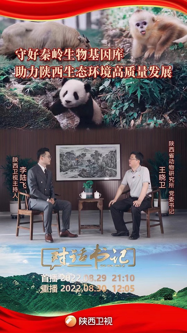 8月29日,陕西卫视《对话书记》节目首播《守好秦岭生物基因库 助力陕西生态环境高质量发展》,节目中陕西省动物研究所(西北濒危动物研究所)党委书记王晓卫讲述研究所科研人员如何研究和保护秦岭生物基因库,努力谱写陕西生态环境高质量发展新篇的奋斗故事。