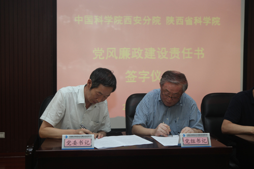 在首先进行的西安分院党风廉政建设责任书签订仪式上,国家授时中心主任郭际和党委书记王玉林分别与西安分院院长赵卫,党组书记杨星科签订了个性化党风廉政建设责任书。