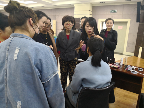 讲座邀请临潼区头彩造型的化妆师,她从实际操作出发,分别对两位学员模特演示了正式场合干练优雅的妆容和生活中干净清新的妆容,从底妆、眼妆、唇妆和修饰详细讲述了各个步骤具体的做法和顺序,以及颜色的选取、眉型和发型的修饰。为了更好地让大家了解自己适合的妆容,她还具体分析了不同脸型的人各自的特点,以及如何避重就轻,展示出自己最好的一面。随后,化妆师还给大家分享了护肤的常识。讲座后,化妆师还为参加培训的多名职工和研究生设计了适合各自的眉型和发型,受到大家的一致好评。