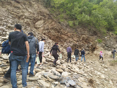 4月26日,参加活动的党员同志翻山涉水,行进到双安镇沔峪河村,在陕西省科学院扶贫队员和村干部带领下,了解省院里为村里脱贫致富奔小康修建的水泥路、发展科技产业兴农富农的效果.......同志们被扶贫工作队的业绩和吃苦精神而感动。