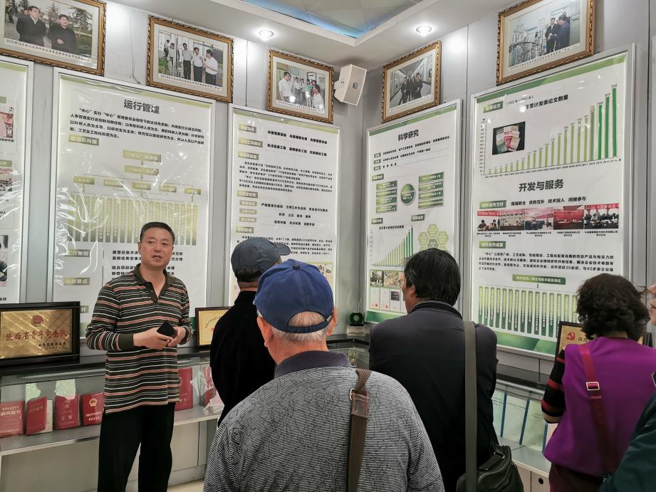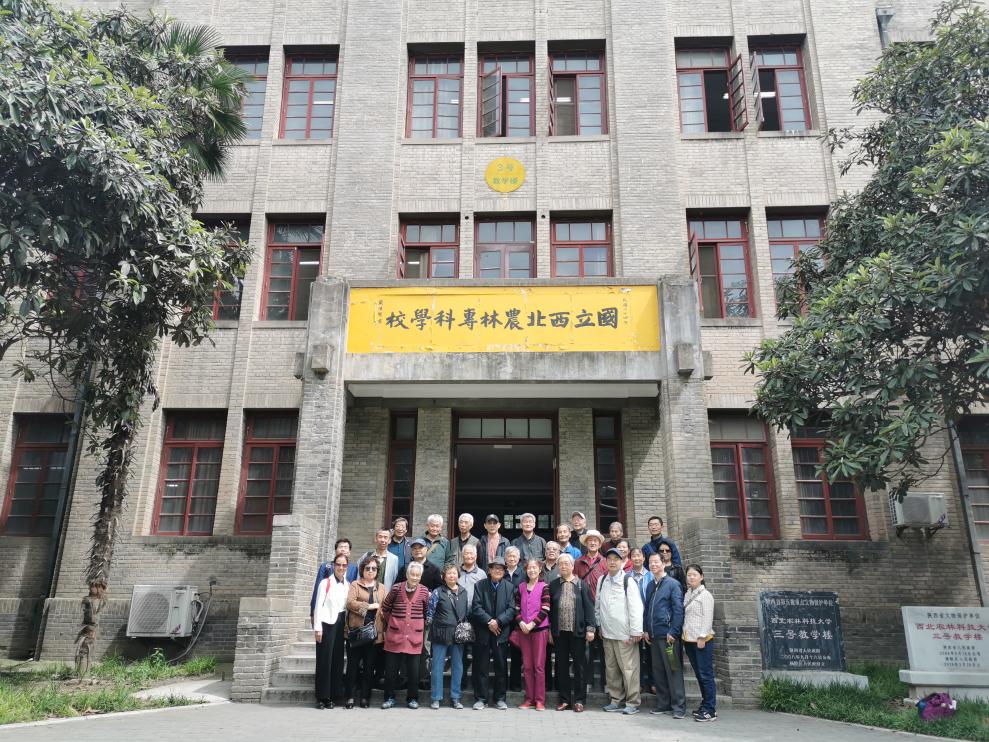 在西北农林科技大学北校区,由张兴教授安排,无公害农药研究服务中心副主任王智辉老师向老党员们介绍了无公害农药的社会效益及研究成果,并介绍大学校园新貌。大家在于右任先生铜像和建校第一座三号教学楼前合影,感叹西农在新时代的发展变化。