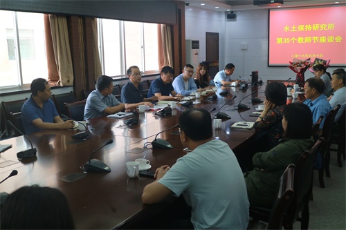 9月10日上午,郑粉莉等8位老中青科学家代表、8位在读研究生代表与水保所领导班子和各管理部门负责人座谈。同学们为老师们献上鲜艳的鲜花,诚挚地道一声“老师,您辛苦了”,表达学子对老师的祝福和感恩。与会代表结合各自的科研和育人工作实践,满怀热情地就水保所科学研究传承、研究生培养管理、人才引进、文化建设等方面的工作积极献言献策。大家一致表示,这种仪式感的关怀让大家充分感受到了作为教师的无上光荣和所党委对科学家们的深切关爱,备受鼓舞,今后将在组织的关怀下更加努力地做好科研和育人工作。