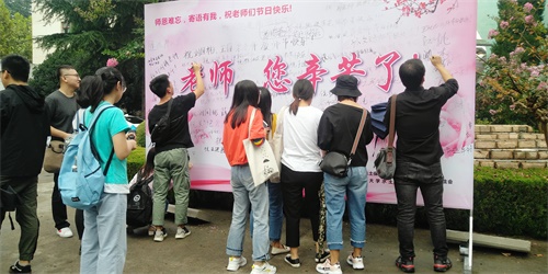 一个人遇到一个好老师是人生的幸运,一个民族源源不断涌现出一批又一批好老师则是民族的希望。为加强研究生德育工作,继承中华民族优良传统,培养研究生知遇感恩情怀,水保所研究生会在教师节期间组织开展以“师恩难忘,寄语有我”为主题的教师节祝福活动。同学们或是同宿舍结伴,或是师门齐上阵,争先恐后书写对老师们辛苦工作和悉心指导的无限感恩之情。密密麻麻、或长或短的祝福代表了每位同学心底最真实的声音。老师们也纷纷写下寄语,并建议开展同学们送祝福的同时设置老师寄语栏,让师生互动、教学相长成为教师节最美好的礼物。