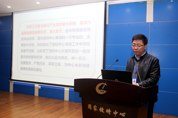 中心主任张首刚在通报会上作了重要讲话。他代表国家授时中心对中国科学院巡视组在中心巡视期间严谨的工作作风和辛勤付出,以及在整改落实阶段给予的大量无私帮助与悉心指导表示衷心感谢。对中心全体在职职工、研究生和离退休老同志在巡视工作中的充分理解和积极配合表示衷心的感谢。对中心各级党组织和职能部门的辛勤工作和深入落实表示充分的肯定。