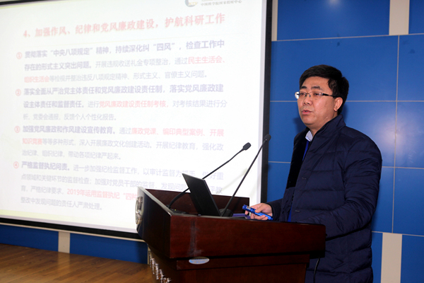 中心党委书记窦忠代表中心党委做了2019年度党建工作总结,报告从以政治建设为统领,加强党的各项建设;扎实开展“不忘初心、牢记使命”主题教育;认真完成政治巡视整改工作,推进“依规治所”;组织建国和建院70周年活动,深化“以德育所”;抓好职代会、群团和离退休工作等方面对中心党委纪委一年来工作进行了总结回顾,报告还针对存在问题及改进措施和2020年党建工作设想进行了梳理。报告全面展示了2019年国家授时中心在科研、党建和管理工作中取得的成绩,使参会职工对研究所现阶段发展现状和改革创新发展形势有了更加深入的认识和了解,进一步提升了广大职工的荣誉感和自信心,增强了研究所凝聚力。