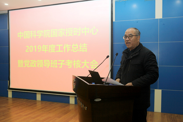 会上,中心主任张首刚代表中心领导班子做2019年度工作总结报告。报告总结了2019年总体工作情况及重点科研项目的进展情况,并对2019年民主生活会意见及落实情况进行了通报,同时针对存在的主要问题及2020年重点内容进行了工作部署。报告对中心2019年度“一三五”规划完成、守时授时任务和国家重大任务、科研项目承担经费情况和科研产出、科研成果转移转化、国际交流与合作、人才队伍建设、研究生教育、科研支撑、基础设施建设、科普宣传等工作进行了全面总结;并对2019年度职工岗位考核情况进行了通报。最后,张首刚向一年来为国家授时中心发展付出辛勤劳动和做出积极贡献的所有同事表示衷心感谢。
