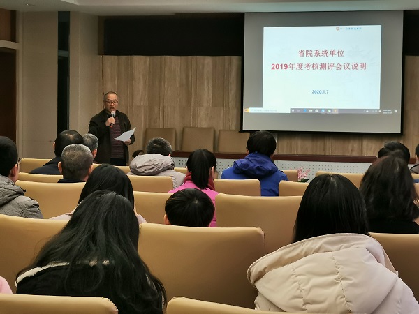 根据《陕西省科学院研究所领导班子与领导人员考核实施细则》《陕西省科学院党组关于做好2019年度党建工作考评的通知》精神,2020年1月7日,陕西省科学院组织考评小组对2019年度陕西省动物研究所行政工作和党建工作进行了集中考评。考评小组组长为分省院党组书记孙传东,成员为陕西省生物农业所党总支书记徐升运、省科学院组织人事处处长周玉珍、监审处处长梁峻、党群工作处副处长杨文正、陕西省生物农业所党办主任王国庆。我所领导班子成员、党委委员、纪委委员、学术委员会委员、工会和管理部门领导人员、专业技术骨干与职工代表共34人参加了考评会。考评会议由孙传东主持。