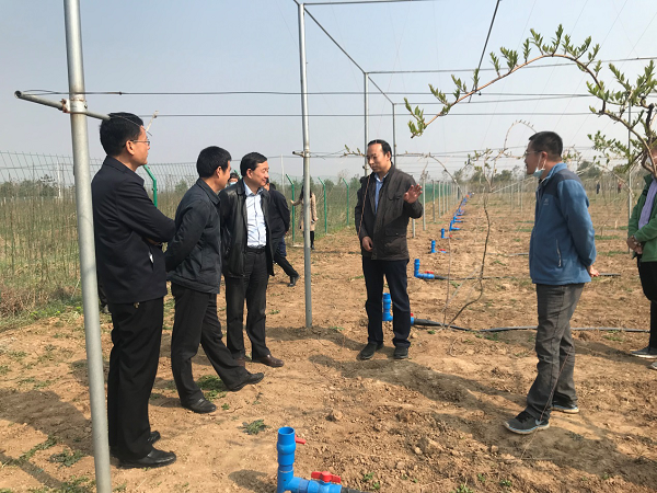3月25日,陕西省西安植物园党委书记(代)杜勇军一行赴“一所一品” 项目基地--武功彩色光果猕猴桃产业示范点调研,并与到基地考察的咸阳市农机管理中心、武功县政府、县农业局的领导就“一所一品”项目推进、彩色光果猕猴桃产业示范推广、机械化与信息化相结合管理优化模式展开交流与座谈。