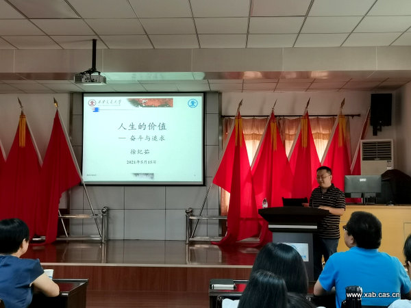 6月15日下午,为推进党史学习教育走深走实,陕西省微生物研究所组织举办“弘扬传承科学家精神”主题讲座,邀请西安交通大学医学部基础医学院徐纪茹教授做了题为“人生的价值 — 奋斗与追求”的报告。万一所长主持报告会。