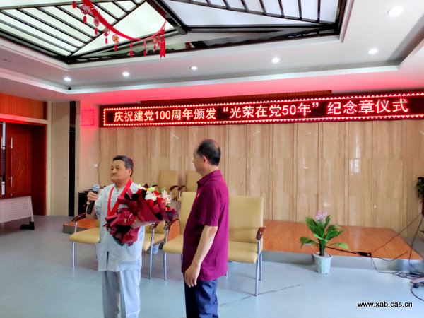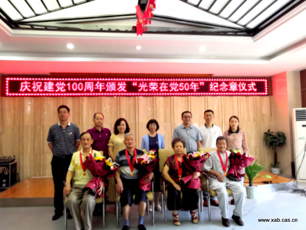 通过举行“光荣在党50年”纪念章颁发仪式暨慰问活动,并安排预备党员宣誓,教育新入党同志,在全所开展好党史学习教育和建党100周年宣传教育,激励科技工作者永葆百年初心,为谱写陕西“追赶超越”新篇章做出应有的贡献,以科研成果为建党一百周年献礼。( 石勇强)