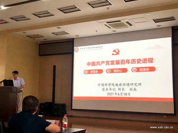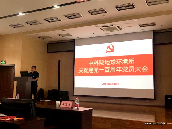 6月30日上午,中科院地球环境研究所举行庆祝建党100周年党员大会,党委书记做专题党课。纪委书记康贸易主持会议,西安分院分党组副书记詹瑞和党群处白桦同志到会指导,全体在所党员参加大会,会议邀请所民主党派和职工代表参加。