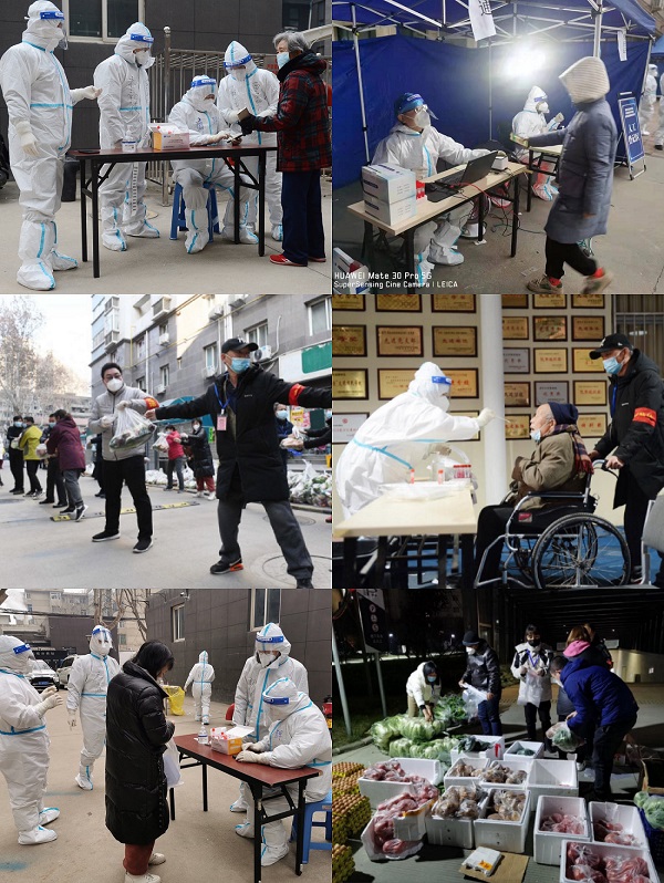 在疫情防控第一线,所长马彩文、党委书记孙传东、副所长谢小平作表率、当先锋,带上红袖章、化身志愿者,主动维持现场秩序,确保“一米间隔”,积极做好防疫健康知识宣传,引领正确舆论导向,密切关注大家生活所需,在为大家送去医用防护以及生活物资的同时,每走到一处,都要详细询问大家的物资储备和身体状况,在这个寒冷的冬天,温暖着你也温暖着他。