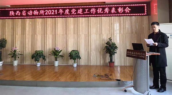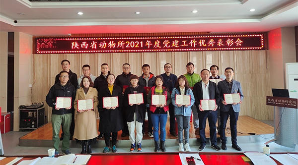 3月24日, 中共陕西省动物研究所党委举行2021年度党建工作表彰会,表彰2021年度被评议为“优秀”等次的共产党员。按疫情规定要求,仅党委书记王晓卫,党委委员常罡、李秋娟、张洪峰、石勇强和获评“优秀”等次的党员同志22人参会。石勇强主持会议。