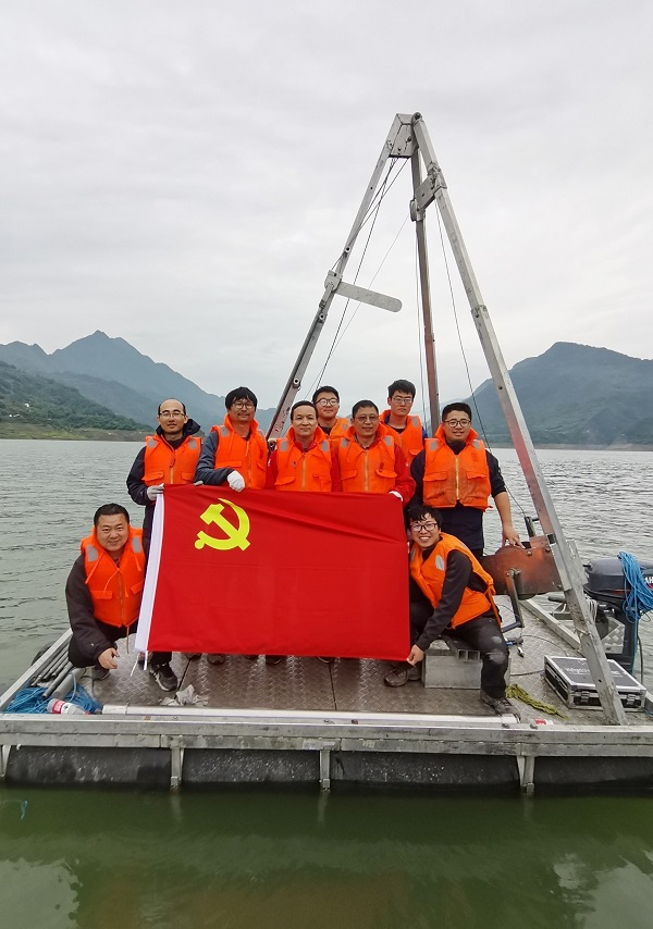 2022年5月10日至5月25日,中国科学院地球环境研究所地表过程与化学风化研究室张飞副研究员、汪进研究员、马小林助理研究员等17名科研人员组成临时党小组,在位于2008年汶川大地震震中下游的紫坪铺水库库区,顺利开展了水下岩心钻探工作。5月21-22日,副所长、党委委员孙有斌研究员专程抵达钻探现场,在水上钻探平台上交流了水库沉积地层厚度及取芯技术,勉励党员同志要发扬一不怕苦、二不怕累的精神,在注意安全的前提下高质量高效率的完成野外工作,确保党旗在野外一线高高飘扬。