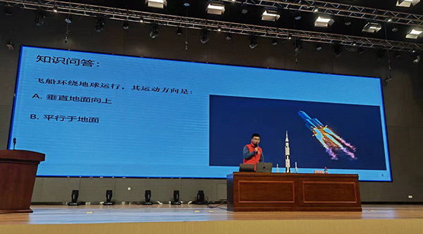3月3日,分省院团工委受邀参加的省直机关团工委学雷锋志愿服务活动在西咸新区泾河新城第一中学举行。活动现场,中科院西安分院研究生科普公益团队三位青年做了《运载火箭回收技术》科普报告和科学实验秀表演,为现场600多名师生带去了一场科技感十足的视觉科普盛宴,将复杂的物理化学知识用通俗易懂的语言表达战线出来,现场气氛热烈、频繁互动,受到学校老师和同学广泛好评。