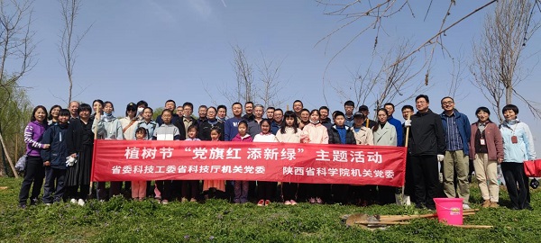 2023年3月12日,第45个全民义务植树节,为深入贯彻党的二十大精神,落实习近平生态文明思想,积极践行“绿水青山就是金山银山”的生态环保理念,由陕西省科技厅机关党委和陕西省科学院(中科院西安分院)机关党委联合在西安植物园开展“党旗红 添新绿”植树志愿活动。陕西省科技工委、陕西省科学院机关党委和院属研究所干部职工代表50余人参加活动。