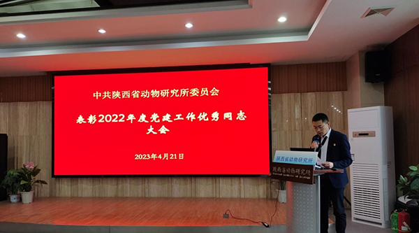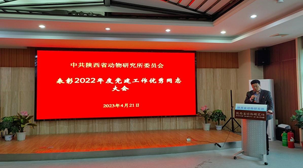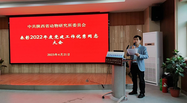 4月21日上午, 陕西省动物所党委举行2022年度党建工作优秀表彰大会。研究所党政班子成员、在所党员同志及非党员代表近40人参加会议。党委组织委员石勇强同志主持会议。