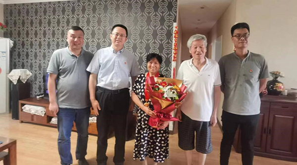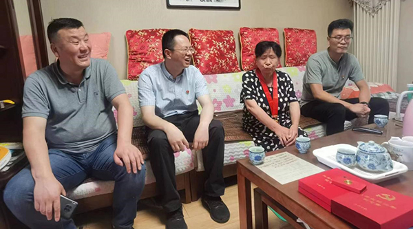7月7日下午,在中国共产党建党102周年之际,陕西省西安植物园党委按照省委及省科学院党组部署安排,由园党委书记陈立带队,与园纪委书记韩桂军、党委委员付文奇、党办主任张蕾一行四人,前往退休党员李菊玲同志家中颁发“光荣在党50年”纪念章并进行慰问,把党组织的慰问和关怀送到老党员家里。
