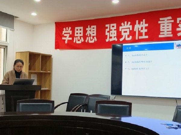 会上,朱奇峰硕士做了《地理信息系统发展历程》学术报告,为大家讲解了什么是地理信息系统,地理信息系统的发展以及现在的广泛应用。赵青侠博士做了《ArcGIS介绍》学术报告,讲解ArcGIS的不同模块和使用方法,并介绍了ArcGIS的应用领域。现场同事们踊跃提问,互动热烈。