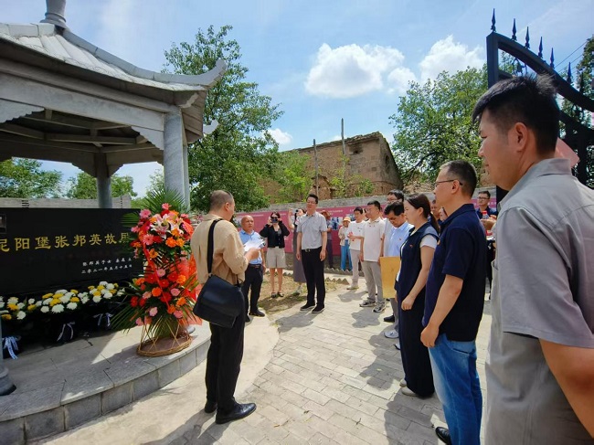 下午,同志们来到陕甘边革命根据地创始人张邦英同志故居学习考察。常罡所长致辞介绍张邦英同志革命业绩。纪委书记李秋娟和党委委员石勇强代表大家敬献花篮,整理缎带。同志们集体默哀一分钟并三鞠躬。党委委员石勇强发言谈体会。全体同志围绕纪念碑瞻仰,参观故居展示的张邦英同志革命生涯。
