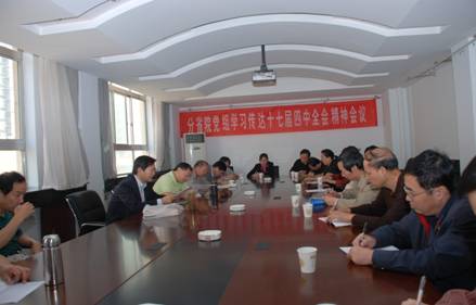 9月29日上午,中国科学院西安分院、陕西省科学院(简称分省院)党组召开会议,学习传达党的十七届四中全会精神。分省院党组成员、各单位党委(总支)书记和党办负责人、机关党支部书记等出席。分省院党组书记周杰同志传达了《中共中央关于加强和改进新形势下党的建设若干重大问题的决定(讨论稿)》的主要精神及《中共陕西省委关于学习贯彻党的十七届四中全会精神的决定》的主要精神与要求。