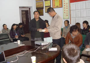 首先,李永代表渭南市农业技术推广中心对李保国一行到基层培训表示欢迎,对把科技知识传播到基层、提高基层科技人员的业务水平表示感谢。李保国代表省动物所、动物学会表示,这次“科技下乡服务--有害生物综合治理培训会”,是贯彻“科学技术是第一生产力”的一次活动,一方面希望通过这次活动,把科研人员的科研成果推广到基层,应用到生产实际中,也是科技人员到基层能够了解生产中的实际问题,提出解决的办法;另一方面希望通过这次培训,提升基层人员的科学技术素养。此外,李保国还代表动物研究所、省动物学会等向农业技术推广中心赠送《陕西啮齿动物志》、《秦巴山区经济植物》及“苹果害虫综合防治技术”培训手册。