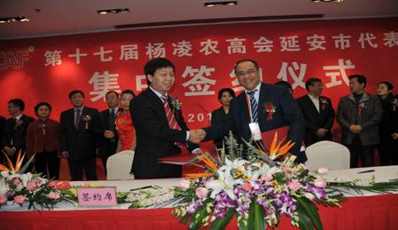11月2日上午,延安市人民政府副市长彭祖佑与中科院西安分院副院长孙传东代表院地合作双方在杨凌国际会展中心签署了科技合作协议。