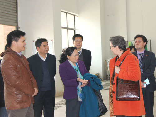在水保所副所长张兴昌研究员和黄土高原土壤侵蚀与旱地农业国家重点实验室主任李占斌研究员陪同下,凯瑟琳·渥特基女士参观考察了人工模拟降雨大厅,听取了关于降雨大厅试验原理介绍以及黄土高原水土保持科学研究进展和成就的相关介绍。