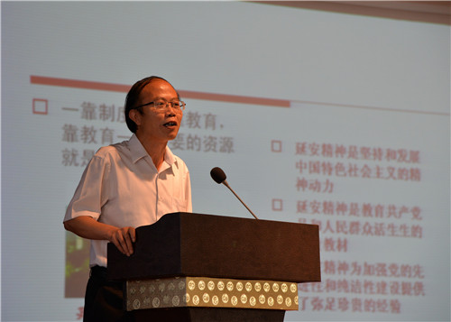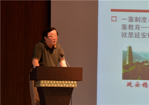 围绕学习、继承、发扬延安精神的主题,会议邀请中国延安干部学院杨延虎教授,作了题为《延安精神及其时代价值》学习辅导报告,杨延虎在报告中较为全面详尽地归纳和解读了延安精神,阐述了延安精神的当代意义与作用等。