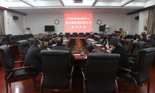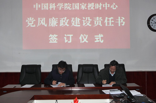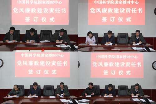 随后举行的党风廉政建设责任书签订仪式上,中心主任张首刚和党委书记王玉林分别与领导班子其他成员,领导班子成员分别与所分管的职能部门正副处长、基本建设和研究生教育负责人、各研究室主任、所属企业及野外台站负责人等签订了个性化党风廉政(反腐倡廉)建设责任书。接着,张首刚与领导班子其他成员、领导班子成员与研究室、职能部门、支撑部门、野外台站及所属工作负责人逐级签订了2016年度安全工作目标责任书,中心基建工作相关人员签订了《国家授时中心基建工作廉洁自律承诺书》。