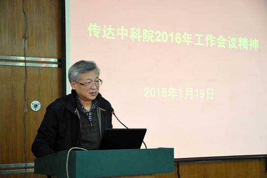 1月19日,西安分院组织召开全体工作人员会议,传达贯彻中科院2016年度工作会议精神,会议由分院党组副书记、纪检组长孙传东主持,分院党组书记杨星科传达会议精神。