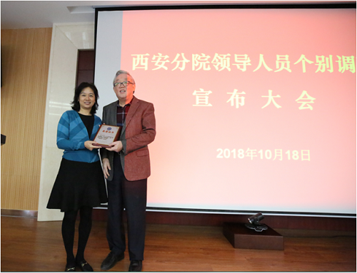 会上,孙晓明宣读了杨星科同志免职文件,并代表中科院党组向杨星科颁发了离任荣誉奖牌,感谢他在西安分院任职分党组书记以来,围绕党的建设、创新文化建设和领导班子建设,以及院地合作工作做出的贡献。杨星科同志发表了离任感言,简要回顾了自己的工作历程和心得体会,并祝福西安分院抢抓历史机遇,争取各项事业取得跨越式发展。西安分院院长赵卫同志代表分院及研究所领导班子做了发言,感谢杨星科同志任职七年以来,团结带领西安分院分党组,认真贯彻中科院党组和陕西省委的各项战略部署,在实施“率先行动”计划和追赶超越目标中,充分发挥西安分院和陕西省科学院的协调督导作用,为西安分院和陕西省科学院的改革发展做出了贡献。