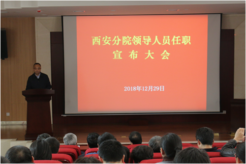 2018年12月29日,中科院西安分院举行西安分院领导人员任职宣布大会,分省院系统各研究所领导代表,以及分省院机关全体职工参加了会议。
