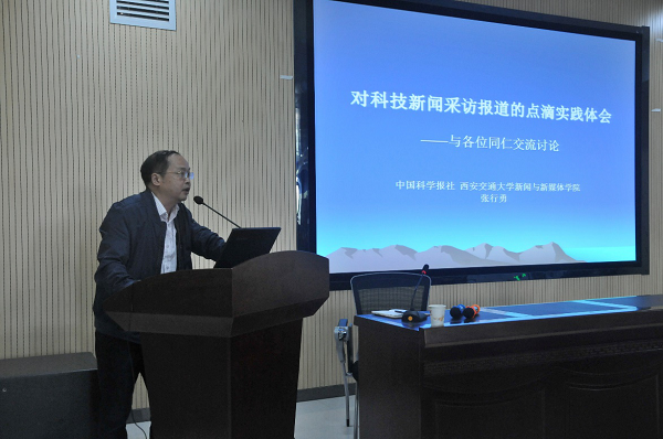 张行勇在“科学新闻的采访写作与实践”专题报告中,从文学小说、学术论文、科普文章的区别入手,强调了新闻准确性是媒体公信度的基础,科学新闻更应严谨、真实,及在分享了自己多年来从事科技成果采访和写作报道体会的同时,与分省院各单位探讨了今年新闻宣传的重点内容和选题策划。