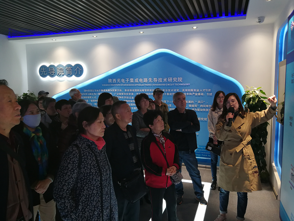 在讲解人员的引导下,老同志们饶有兴趣地参观了西光所科技成果产业化展厅和先导院集成电路成果展厅,观看展厅内的高科技产品实物和模型,详细了解了西光所近年来的创新科研成果、以“研究机构+天使基金+孵化器+创业培训”为一体的特色鲜明的科技创新模式,以及先导院的组织结构、技术研究、战略规划等,分享西光所创新形成独特的“西光模式”和先进的“硬科技”理念。