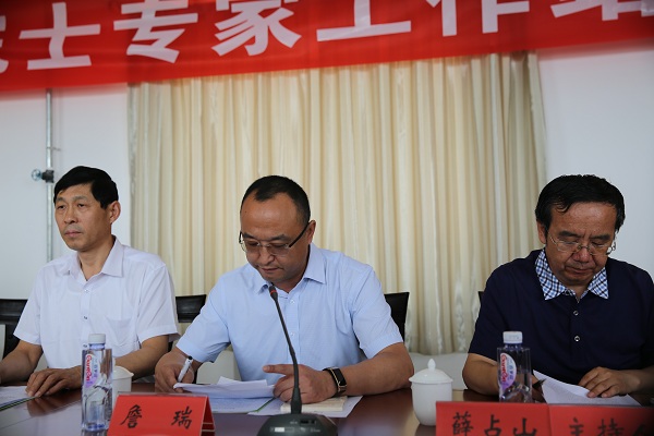 詹瑞受中国科学院院士邵明安委托作了讲话。首先向出席中科院院士邵明安工作站授牌成立的各级领导、专家表示感谢,及对以榆林沙漠王生物科技有限公司为依托的神木市生态保护协会,在张应龙的带领下,治沙团队先后与中国科学院、中国林科院等单位开展科研合作,围绕毛乌素沙地综合治理,开发长柄扁桃等课题研究,历经17年完成了人工造林38万亩,植被覆盖度由3%提高到65%,及20多项研究成果,表示敬佩。其次,邵明安院士工作站的成立,标志着毛乌素沙漠生态治理必将上一个新的台阶,邵明安院士团队将在土地复垦、土壤改良、植被水分承载等方面开展深入研究,建立生态治沙实验示范基地,开展人才培养和科学普及,将进一步推进沙区植被恢复和防治土壤退化,实现经济林果种植和沙产业科技科普创新。