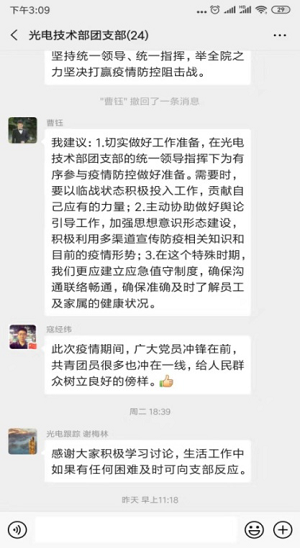 在此次疫情防控期间,通过及时采取在线交流讨论学习起到了一定的宣传教育作用,更坚定了团员青年进一步增强“四个意识”、坚定“四个自信”、坚决做到“两个维护”的信念,努力奋进,积极向党组织靠拢的决心和信念。