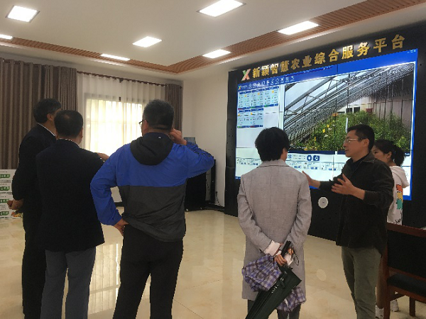 李保国首先来到大荔县新颖现代农示范园,查看了智慧农业综合服务平台,肯定了大棚物联网系统、质量安全追溯系统、农产品电商系统在现代农业中的演示,提出要通过多点考察、吸取经验,不断提升和优化。