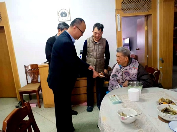 在90多岁的老党员李泗良家中,詹瑞亲切询问他的身体和生活情况、家人春节年货准备情况,并再三叮嘱他要保重身体。在困难党员李兴杰家中,詹瑞与老同志拉起家常、聊起了书法等日常爱好,详细了解困难党员的身体健康状况、家人工作以及亟需解决的困难问题等,并为老党员、困难党员送上了慰问金和慰问品。康贸易同志前去离退休老干部、因病生活不便的党员代表贺思贵、傅永亮家中慰问,了解老人目前的身体状况,特别叮嘱他们要好好保重身体,度过一个祥和的新春佳节。
