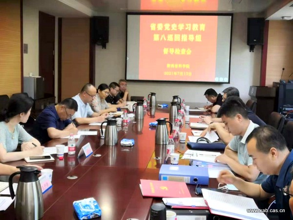 7月13日上午,中共陕西省委党史学习教育第八巡回指导组一行5人,在组长王希峰的带领下,检查指导陕西省科学院第一阶段党史学习教育开展情况。会议由省科学院党组副书记詹瑞主持,党组成员康贸易及省院各单位党委(总支)书记、机关各支部书记参加。