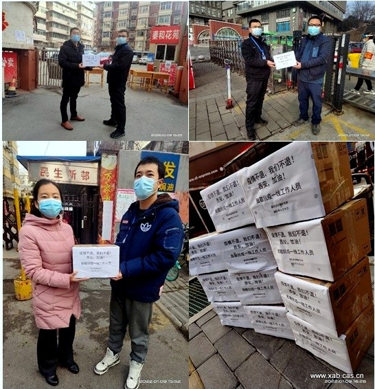 为贯彻落实中共陕西省委组织部《关于省直机关和企事业单位干部下沉西安基层一线支持疫情防控工作的通知》<陕组通字〔2021〕144号>文件精神和陕西省科学院相关工作部署,1月9日,陕西省动物研究所疫情防控工作领导小组研究决定,对研究所自购和接受捐赠的防疫物资制定方案,安排工作人员及时送达至抗疫一线职工。